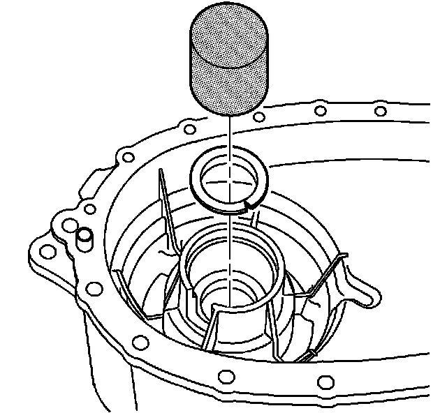 10. Using the J 22828 and a hydraulic press, install the rear output shaft bearing with the retaining ring groove towards the gear.