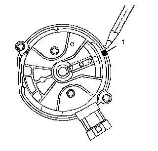 7. Once the distributor is completely seated, the rotor segment should be aligned with the mark on the distributor base (1).