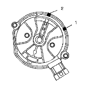 12. Place a second mark on the base of the distributor (2). This will aid in achieving the proper rotor alignment during the distributor installation.