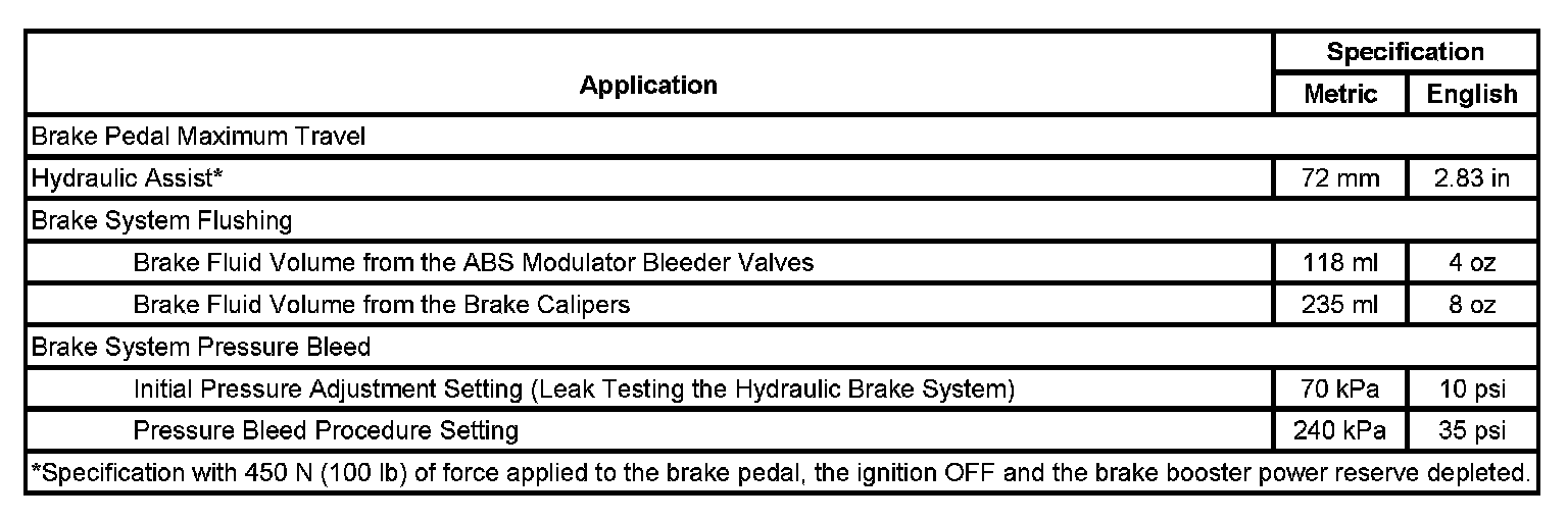 Brake System Specifications:
