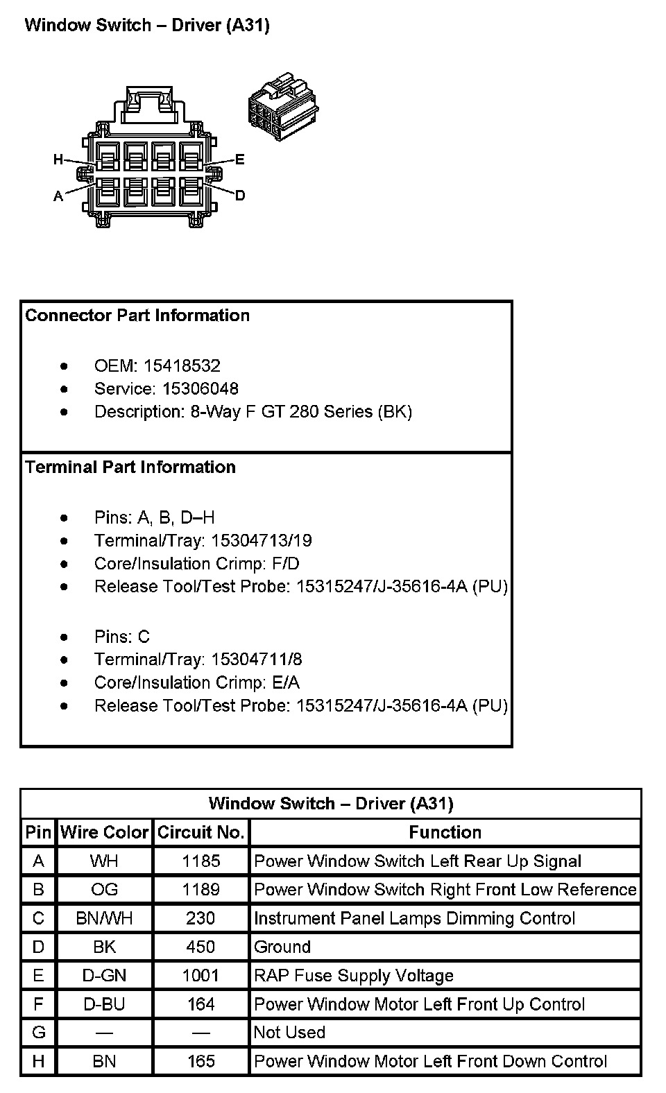Window Switch - Driver (With RPO Code A31):