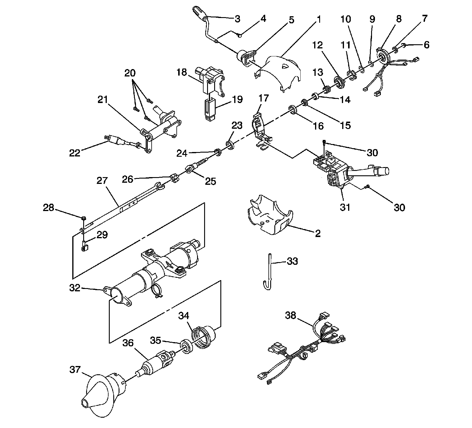 Steering Column Disassembled View (Standard Column)