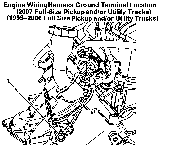 The wire terminal (G103) attaches either to the front or to the rear of the right side cylinder head, depending on the model year of the Full Size Pickup and/or Utility Trucks. If the ECM ground terminal has been found to be corroded, then follow the service procedure outlined in this bulletin to correct the corrosion issue.