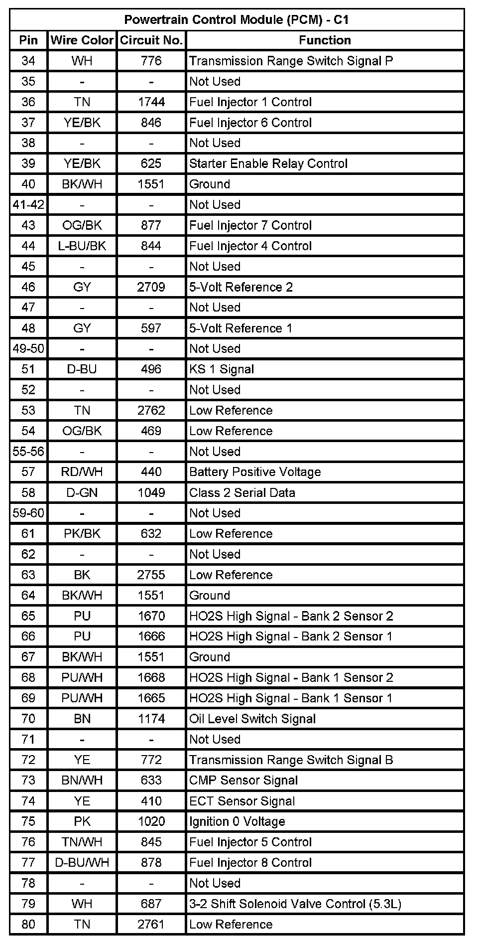 Powertrain Control Module (PCM) - C1 (Pin 34 To 80):