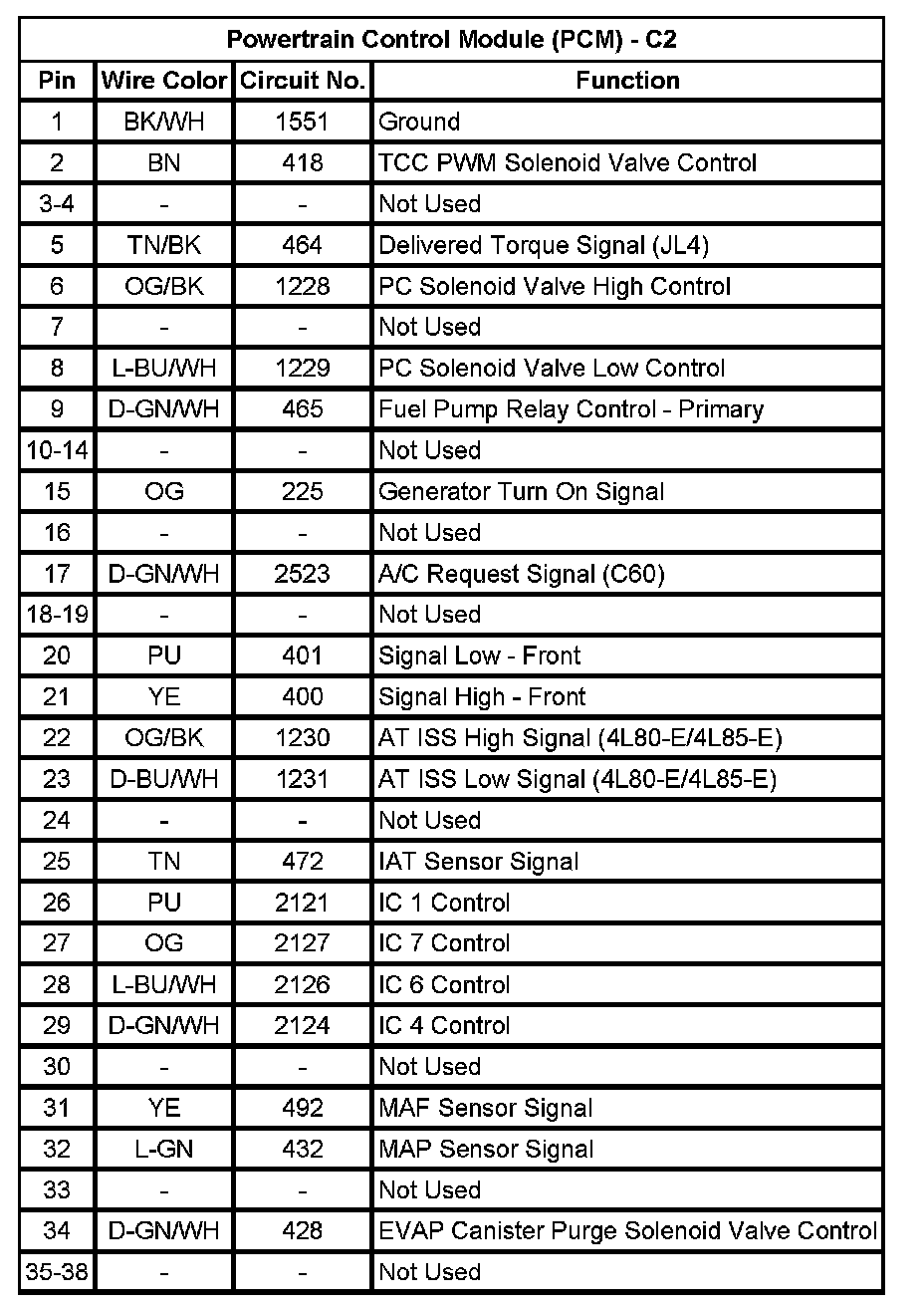 Powertrain Control Module (PCM) - C2 (Pin 1 To 38):