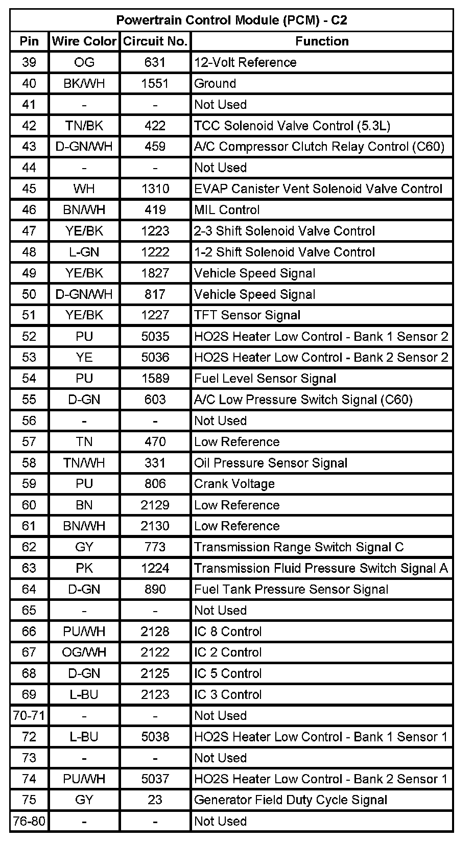 Powertrain Control Module (PCM) - C2 (Pin 39 To 80):