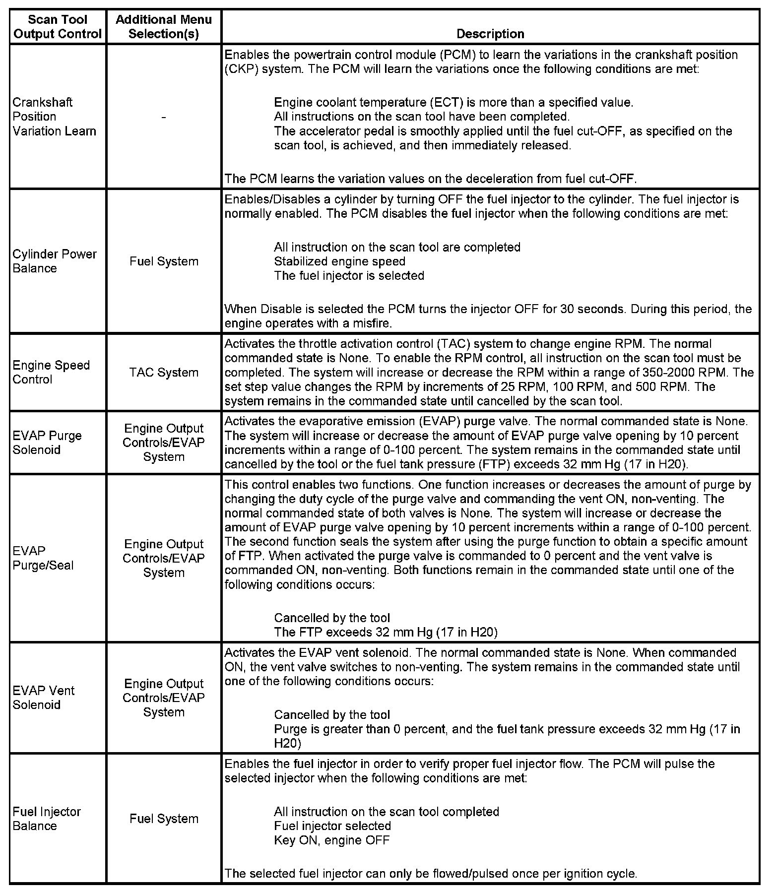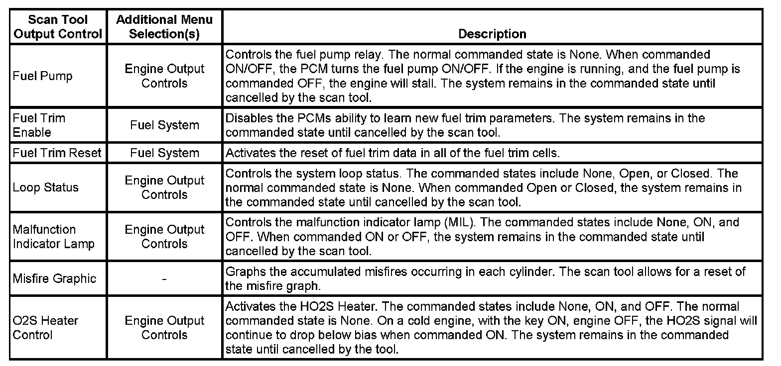 Scan Tool Output Controls