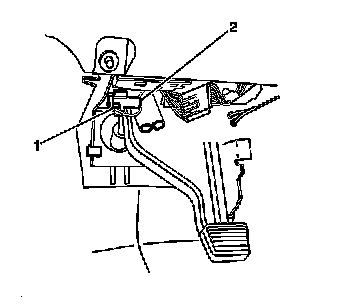 5. Disconnect the inflatable restraint steering wheel module connector (2) located to the left of the steering column.