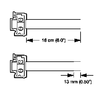 6. Cut the steering wheel module harness connector out of the vehicle, leaving at least 16 cm (6 in) of wire at the connector.