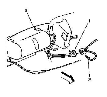 14. Connect the inflator module (1) to the adapter (2) on the SIR deployment harness (3).
