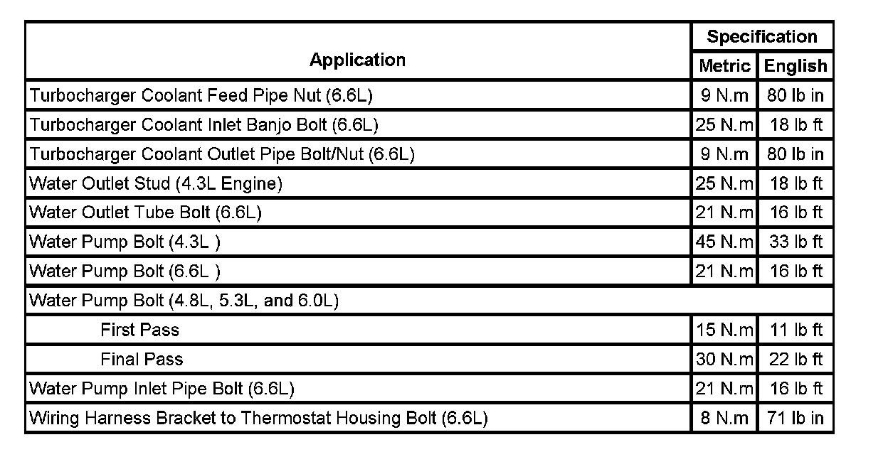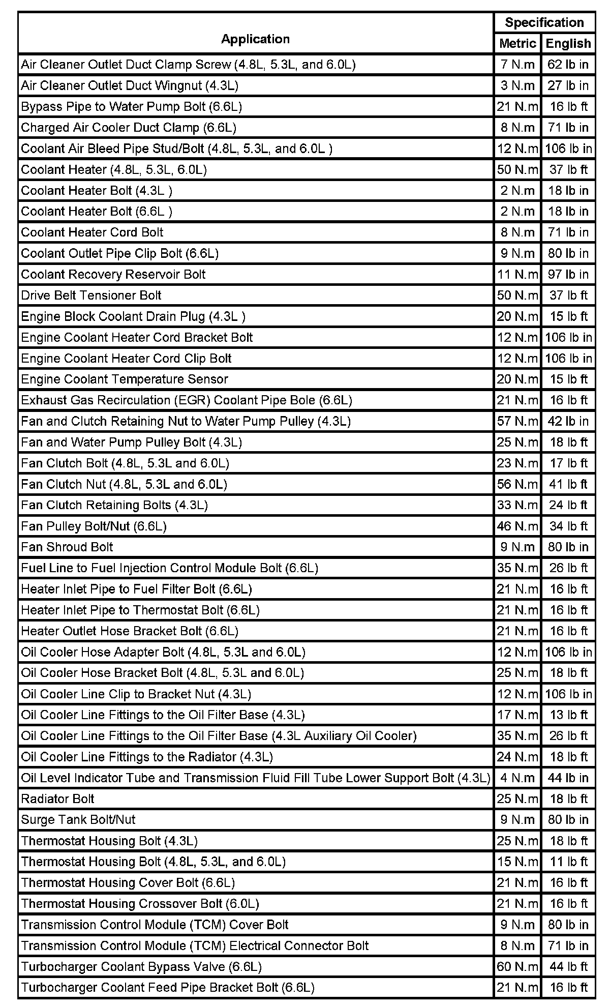 Fastener Tightening Specifications: