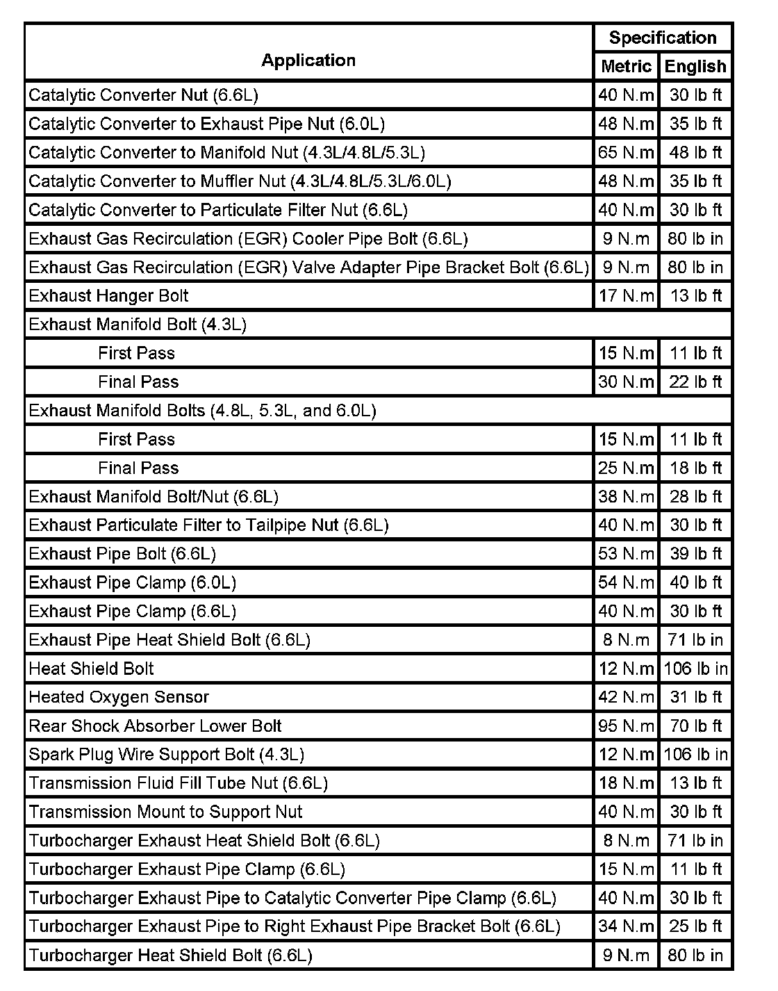 Fastener Tightening Specifications: