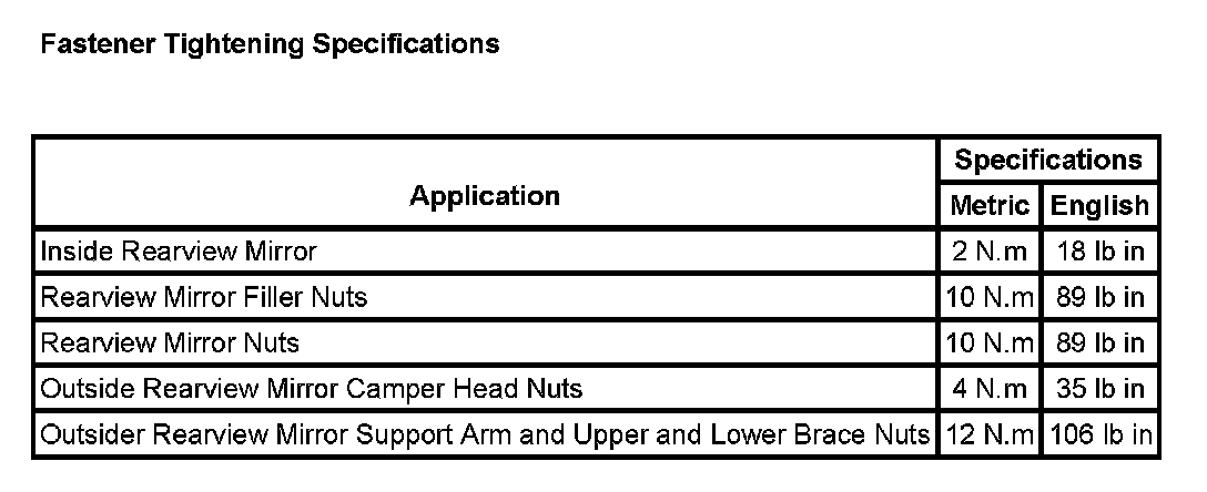 Fastening Tightening Specifications: