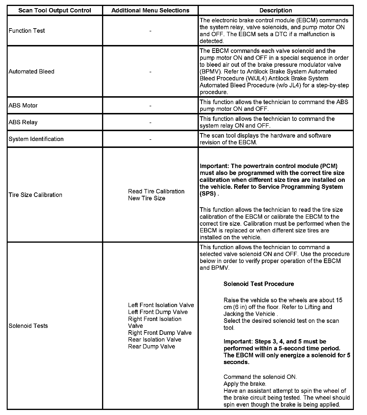Scan Tool Output Controls (W/O JL4):