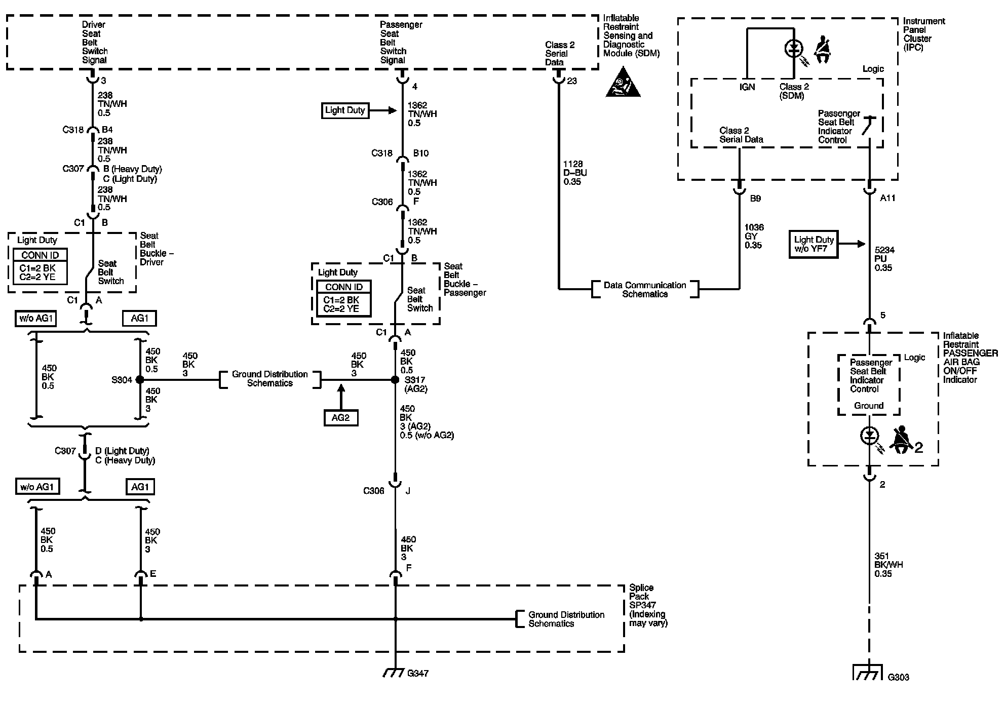 The locations for the Connectors, Grounds, Splices, and Grommets shown within these diagrams can be found via their numbers at Vehicle Locations.