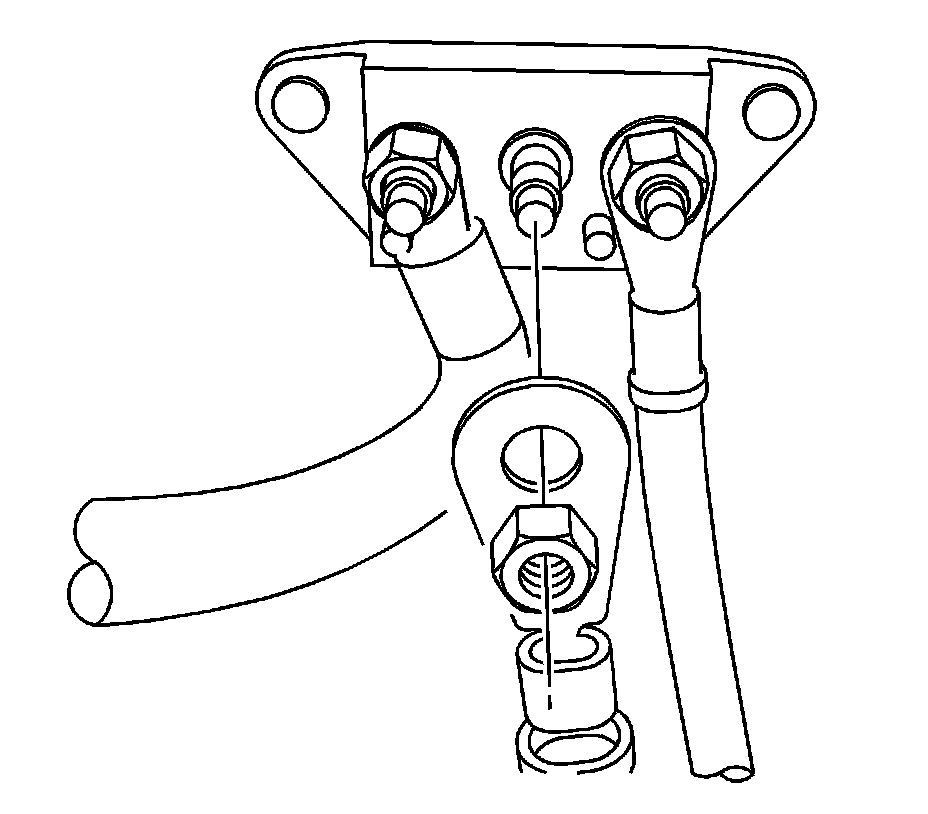 3. Position the positive battery to underhood bused electrical center (UBEC) cable to the junction block and install the nut.