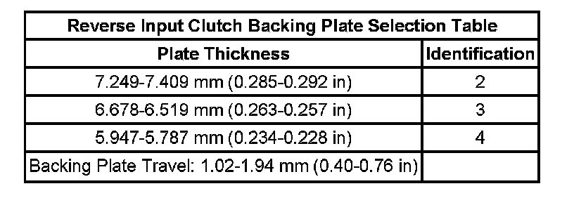 Reverse Input Clutch Backing Plate Selection Table: