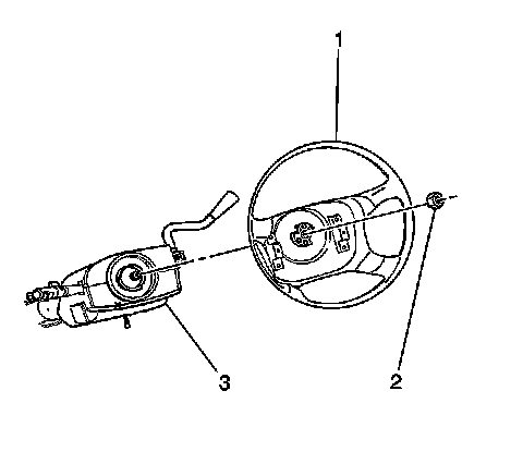 3. Remove the steering wheel nut (2).