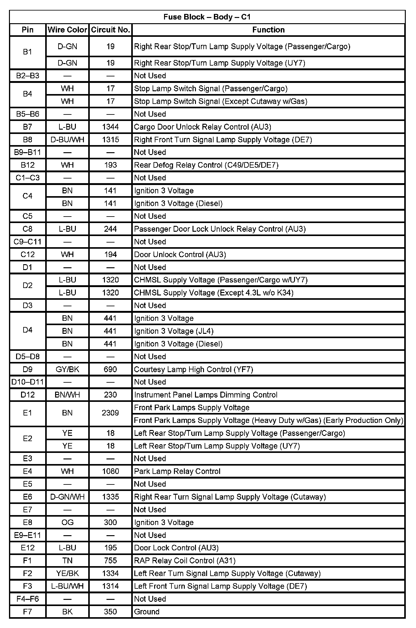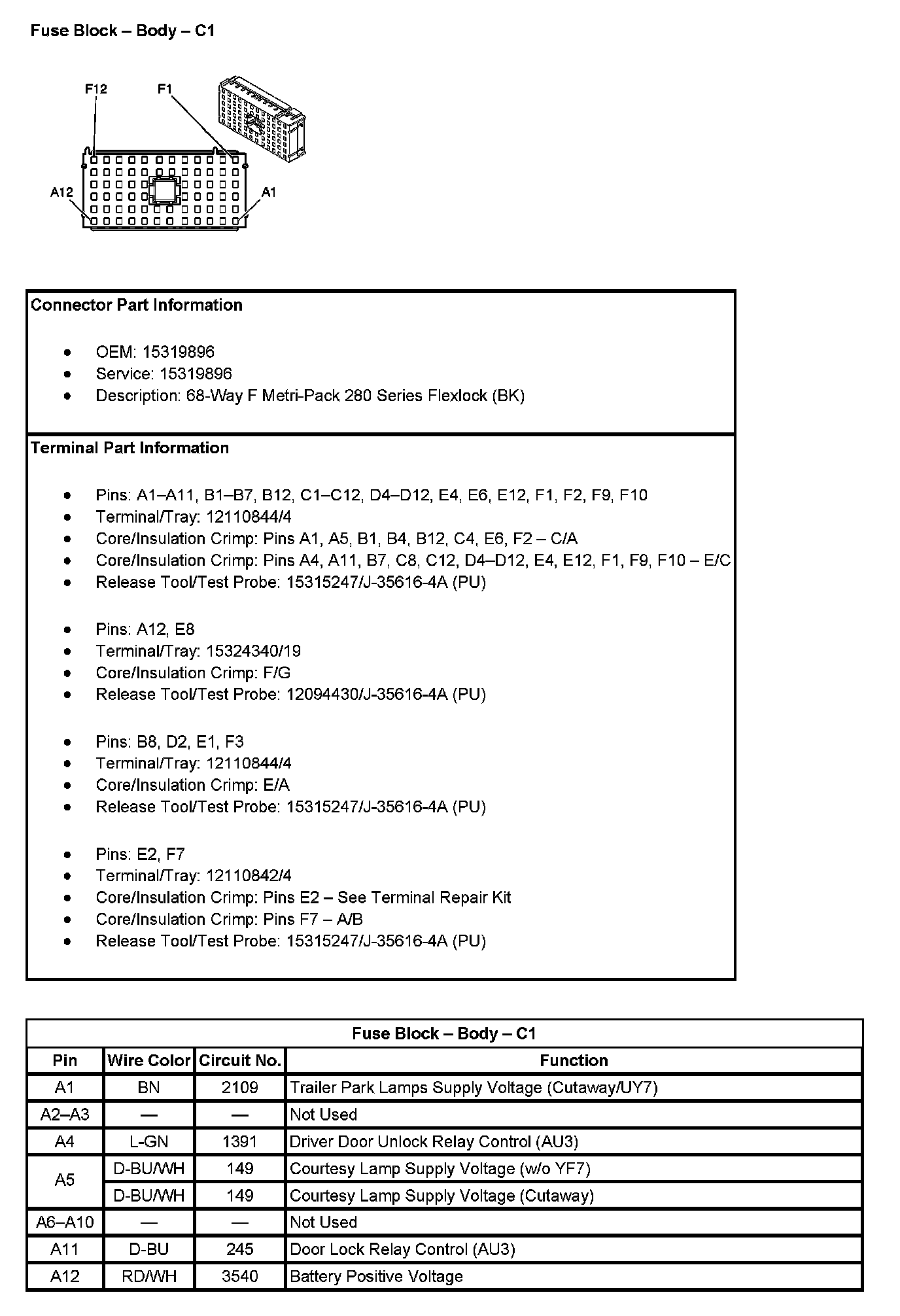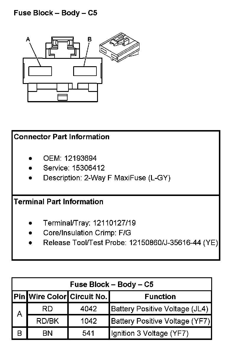 Fuse Block - Body - C4 (With RPO Codes YF7/YF1):