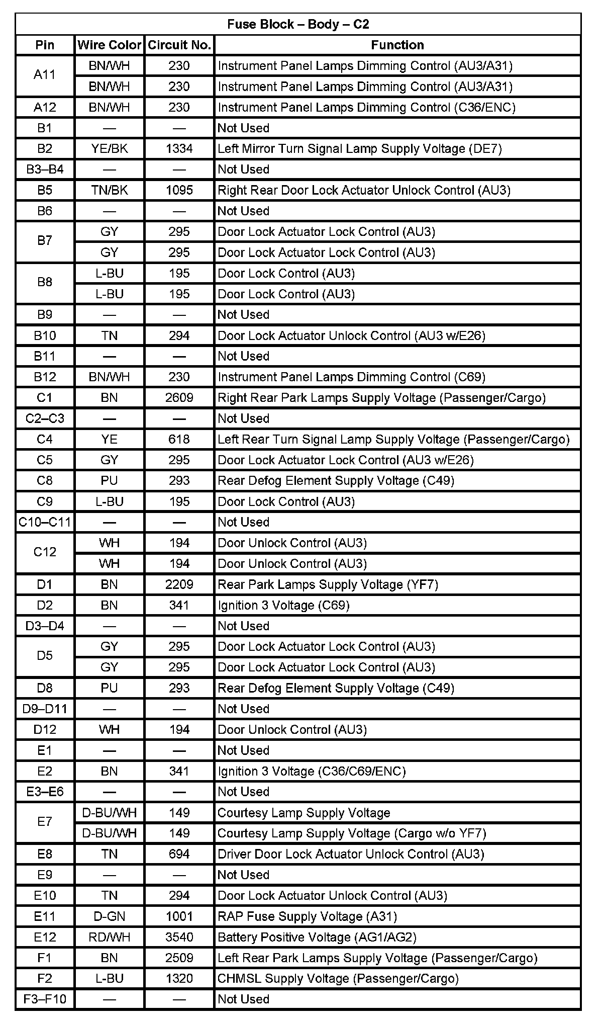 Fuse Block - Body - C2 (Pin F11 To F12):