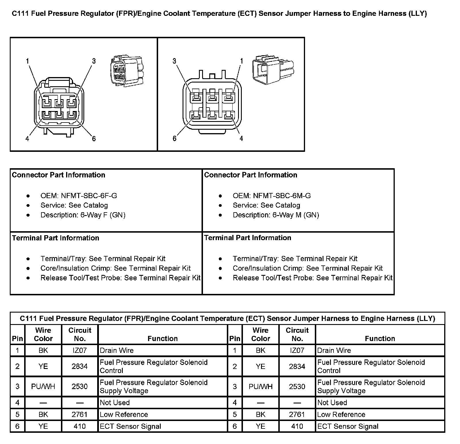 C111 Fuel Pressure Regulator (FPR)/Engine Coolant Temperature (ECT) Sensor Jumper Harness To Engine Harness (LLY):