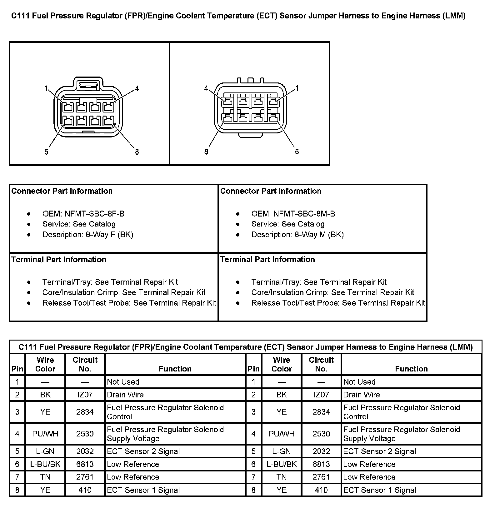 C111 Fuel Pressure Regulator (FPR)/Engine Coolant Temperature (ECT) Sensor Jumper Harness To Engine Harness (LMM):