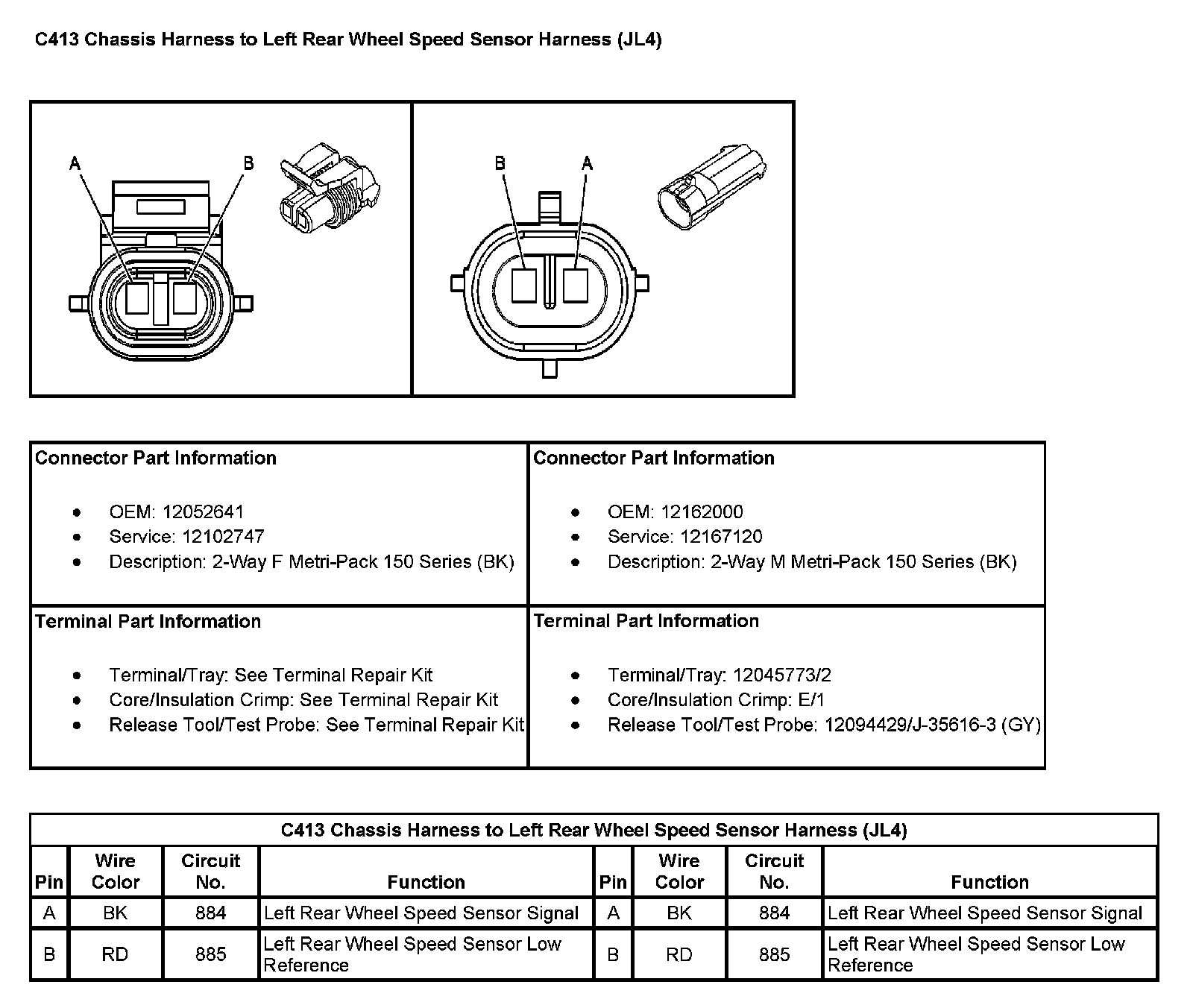 C413 Chassis Harness To Left Rear Wheel Speed Sensor Harness (With RPO Code JL4):