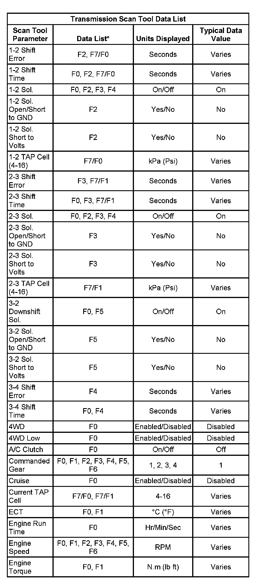Only the parameters listed below are used in this manual for diagnosing. If a scan tool displays other parameters, the values are not recommended by General Motors for use in diagnosis.