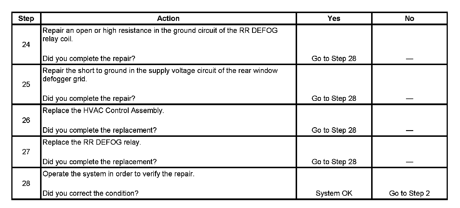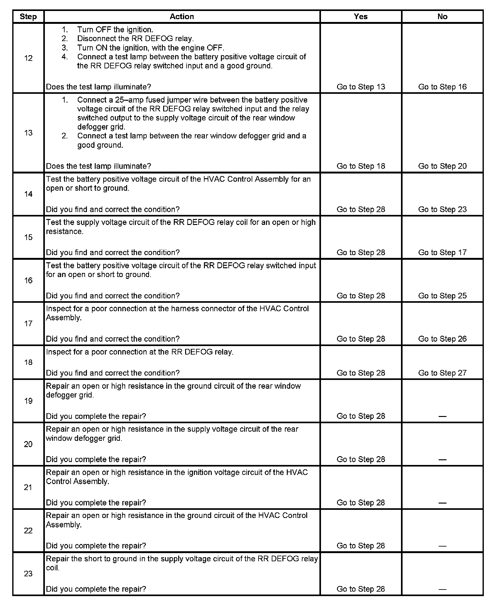9. Listen for an audible click when the RR DEFOG relay operates. Command both the ON and OFF states of the RR DEFOG relay. Repeat the commands as necessary.