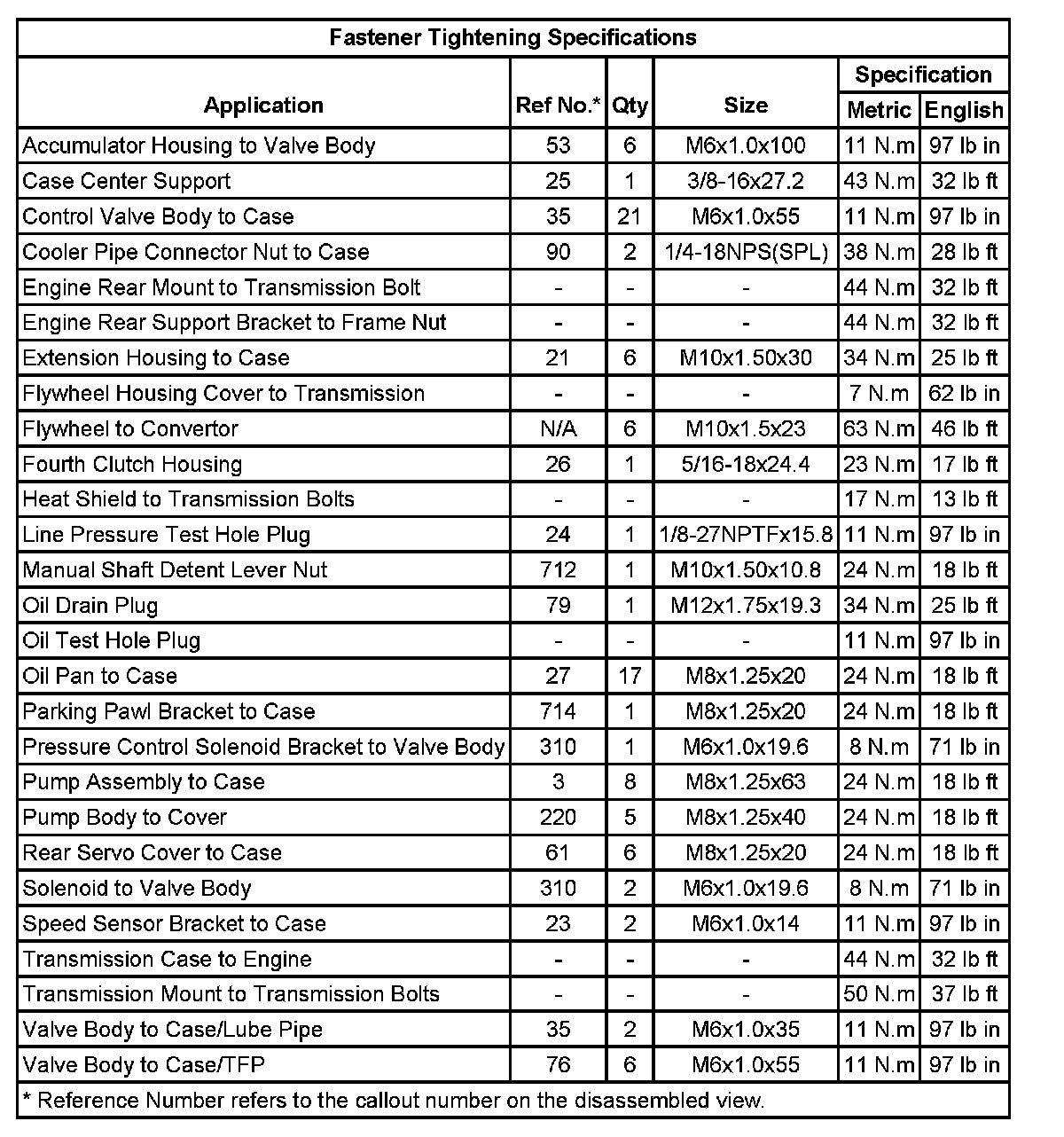 Fastener Tightening Specifications: