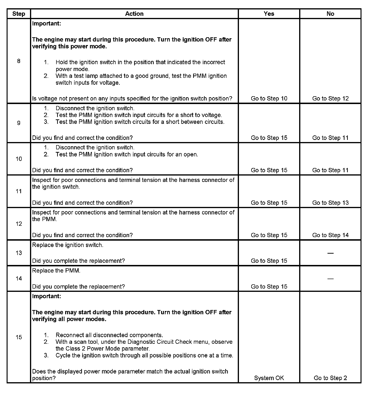 9. If any ignition switch parameters that should be inactive in the present ignition switch position are active, 2 ignition switch signal circuits may be shorted together.
