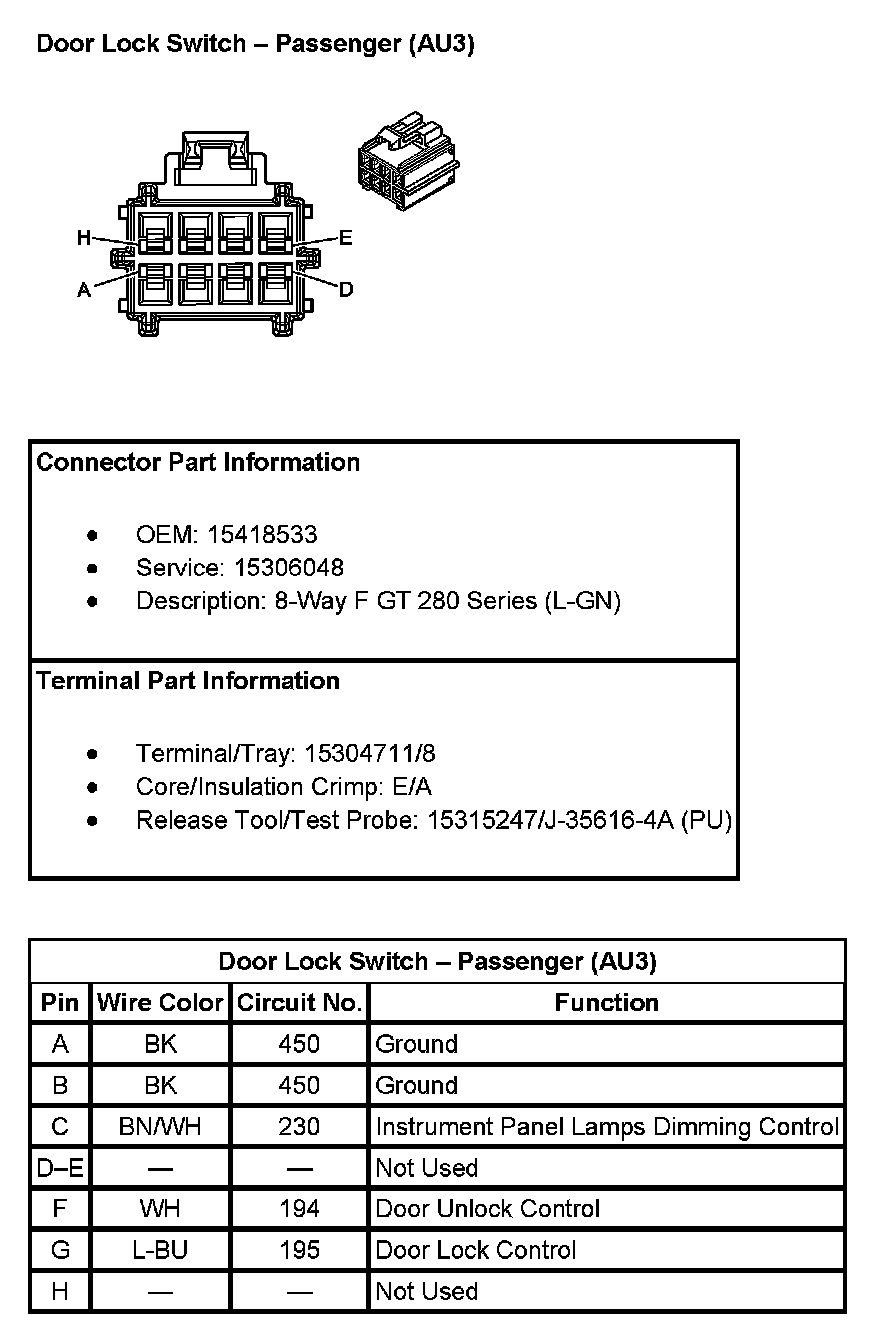 Door Lock Switch - Driver (With RPO Code AU3):