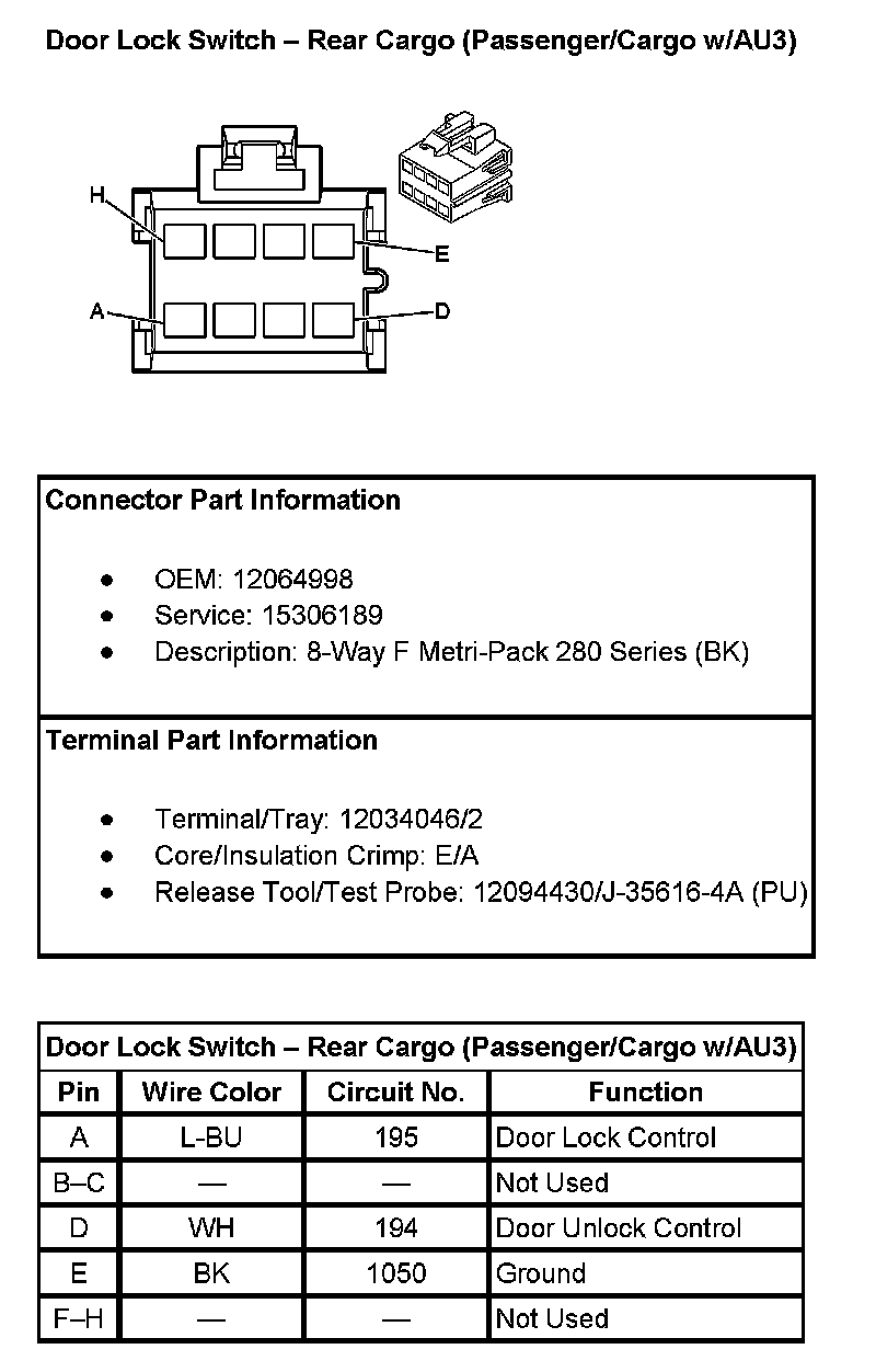 Door Lock Switch - Rear Cargo (Passenger/Cargo W/AU3):