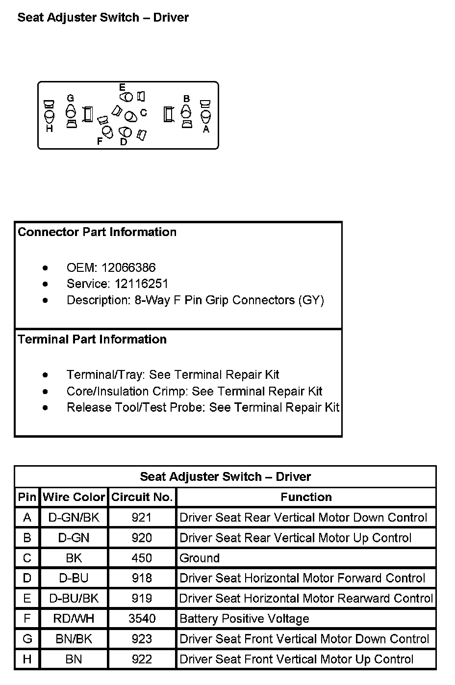 Seat Adjuster Switch - Driver: