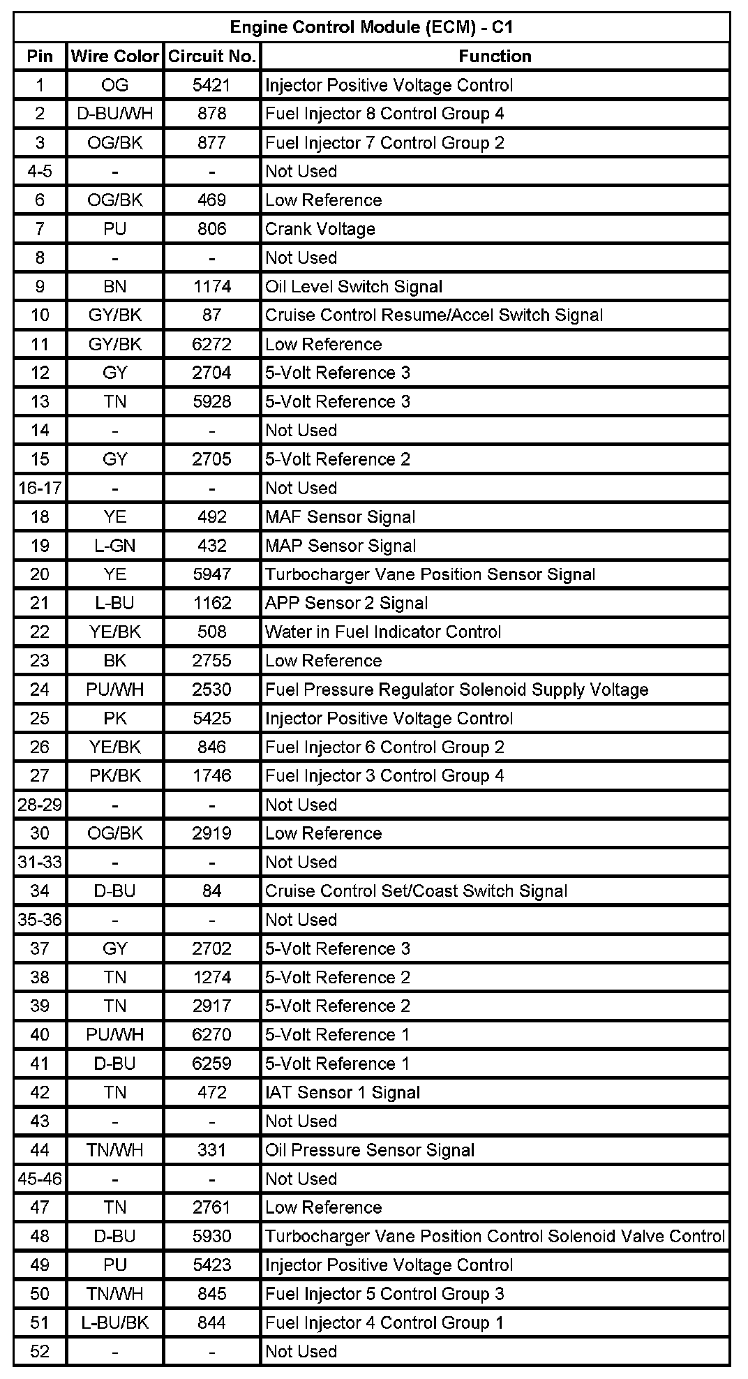 Engine Control Module (ECM) - C1 (Pin 1 To 52):