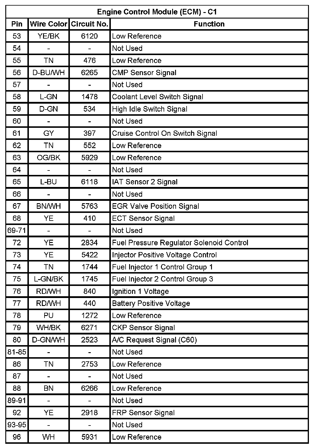 Engine Control Module (ECM) - C1 (Pin 53 To 96):