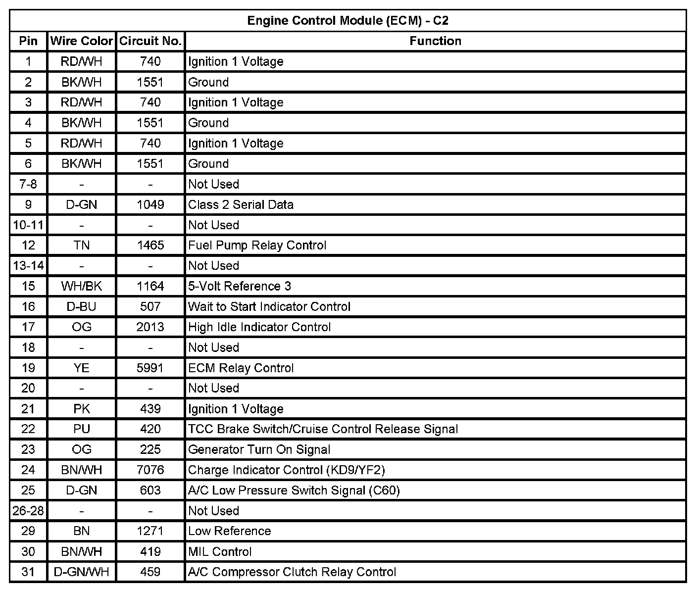 Engine Control Module (ECM) - C2 (Pin 1 To 31):