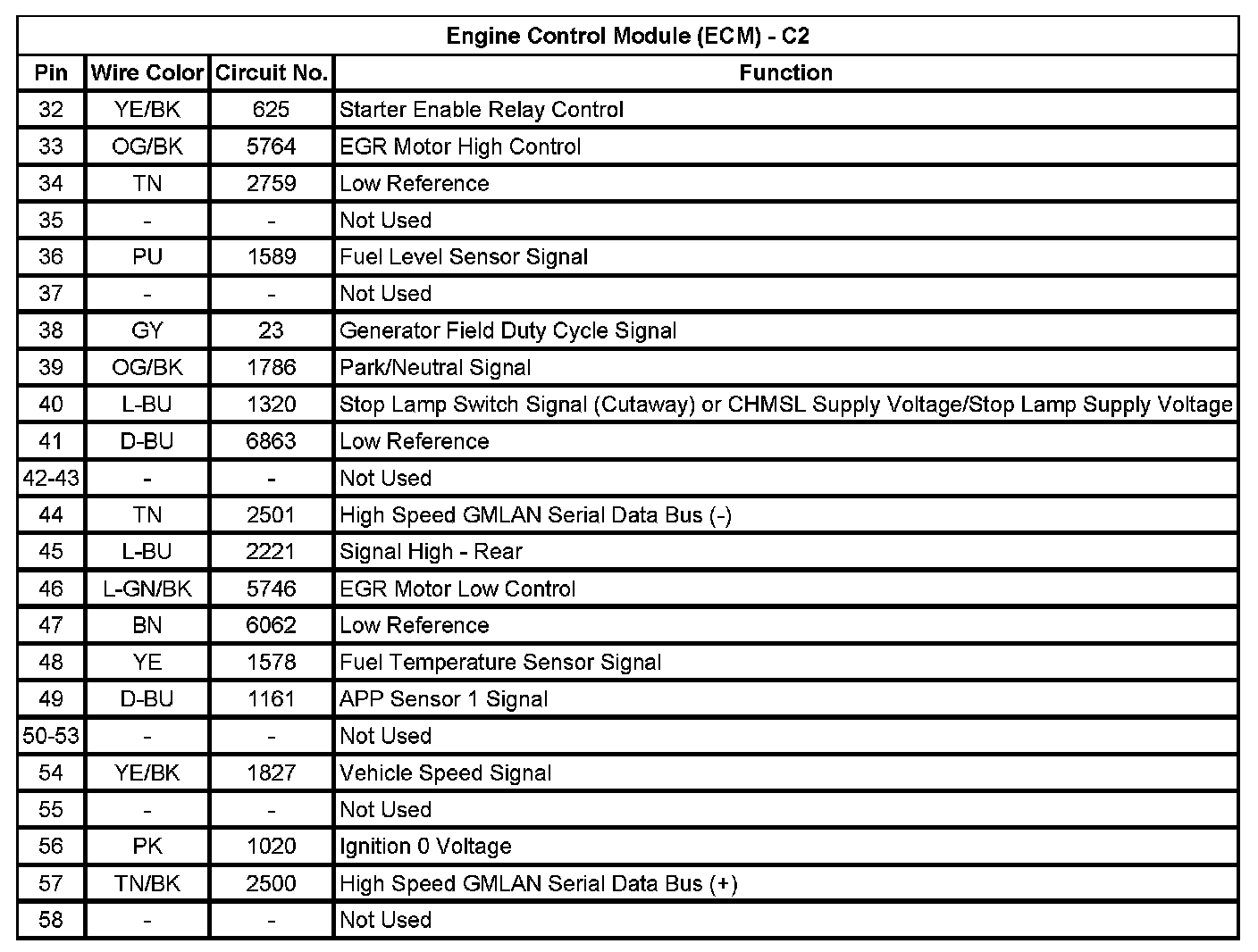 Engine Control Module (ECM) - C2 (Pin 32 To 58):