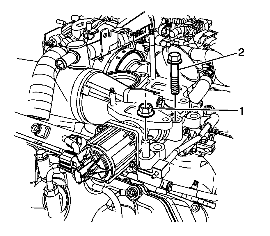 14. If necessary, remove the EGR bracket bolt, nut, and EGR bracket.