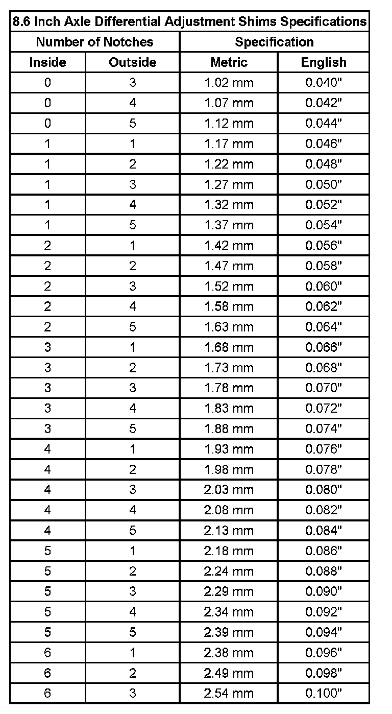 Differential Adjustment Shim Specifications: