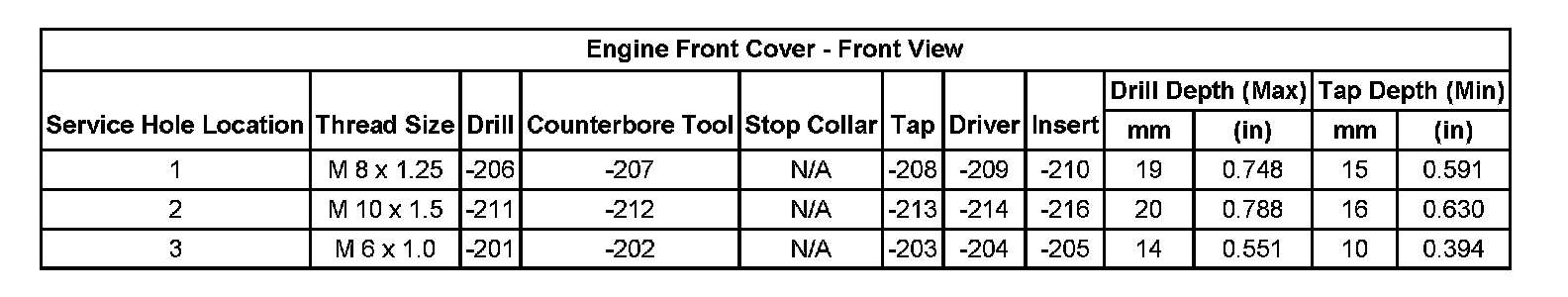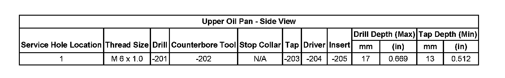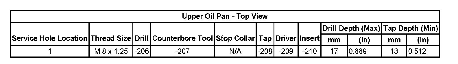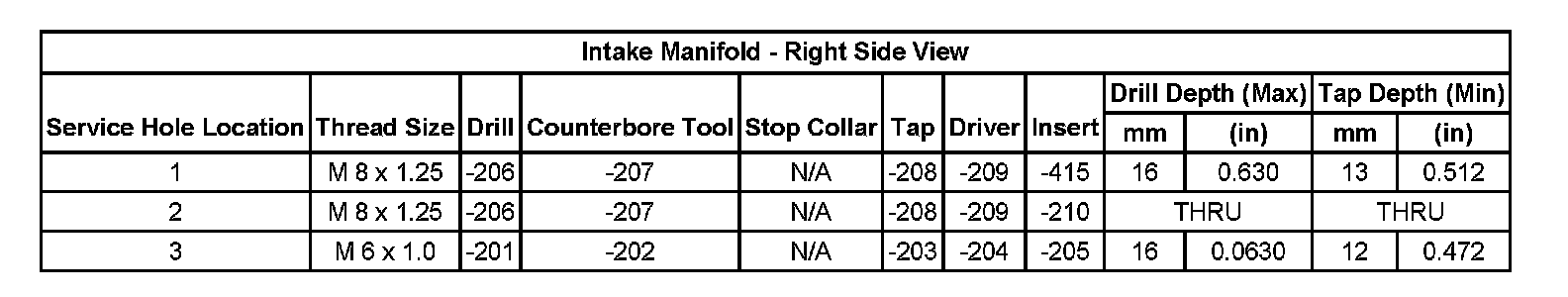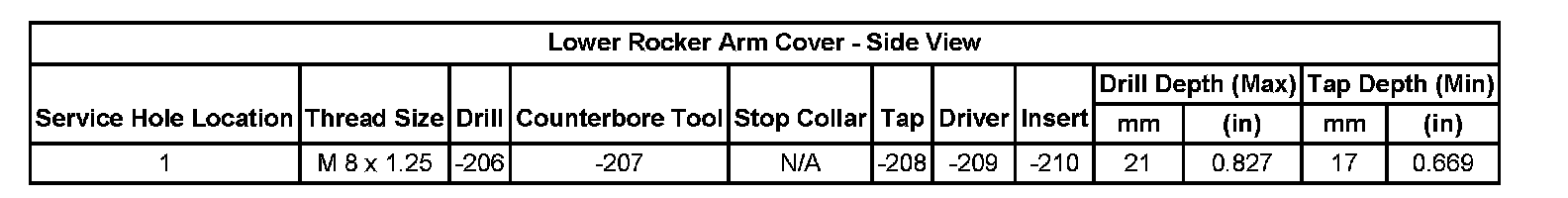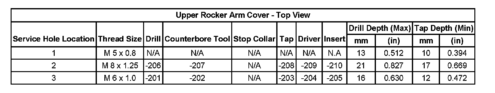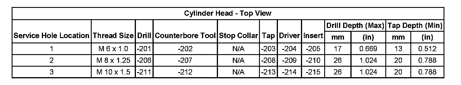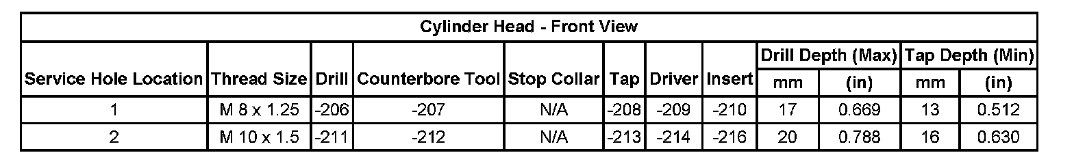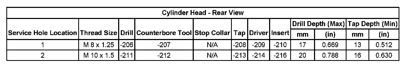 Thread Repair SpecificationsCylinder Head:
