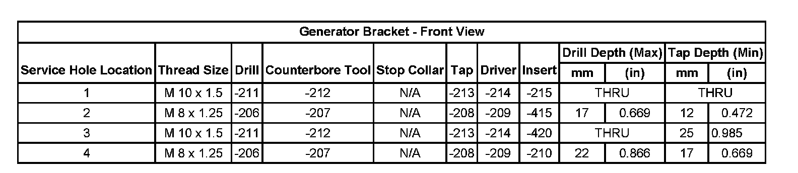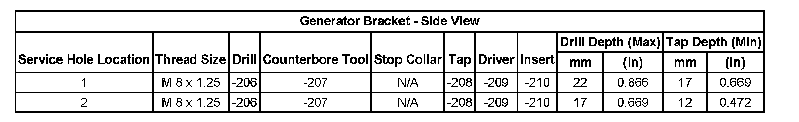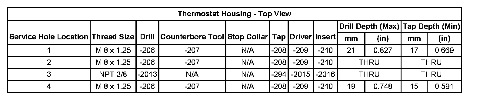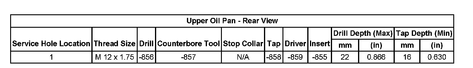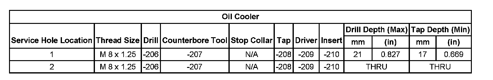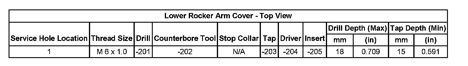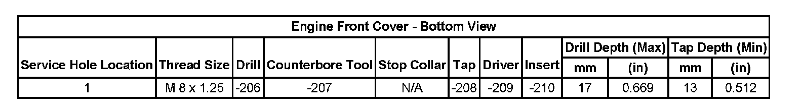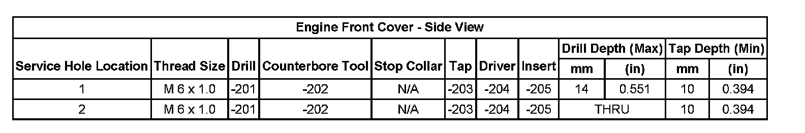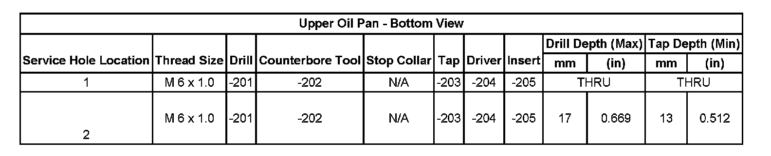 Thread Repair SpecificationsCylinder Head: