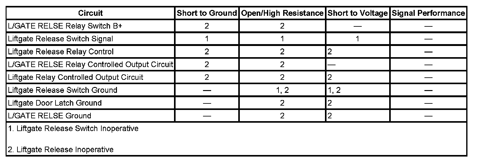 - If the liftgate does not release, refer to Liftgate Release Malfunction.