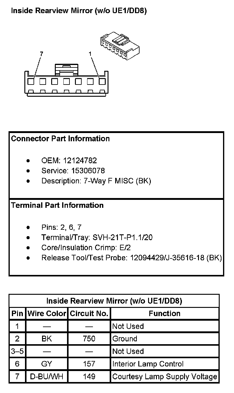 Inside Rearview Mirror (With RPO Code DD8) (Pin 1 To 14):