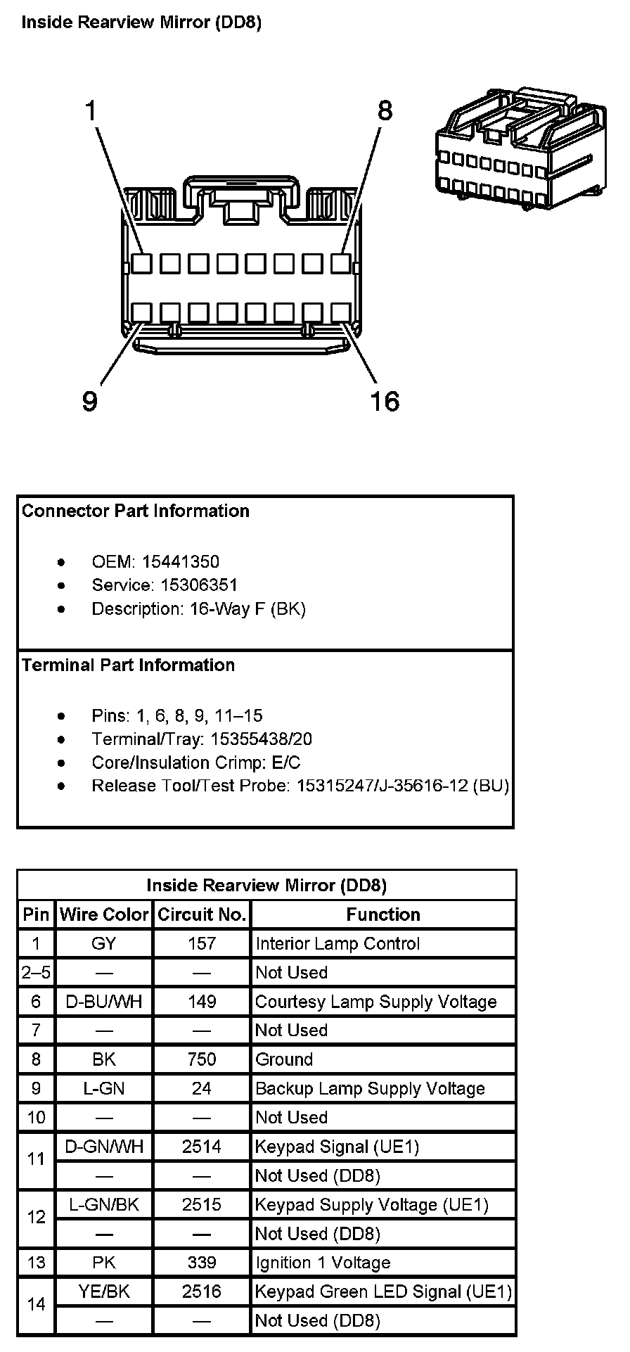 Inside Rearview Mirror (With RPO Code DD8) (Pin 15 To 16):