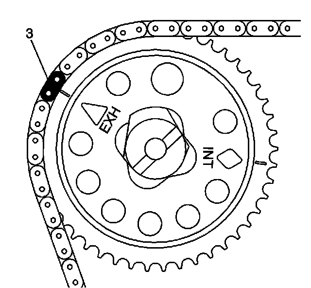 * There are 3 colored links on the timing chain. Two links are of matching color, and one link is of a unique color. Use the following procedure to line up the links with the sprockets. Orient the chain so that the colored links are visible.