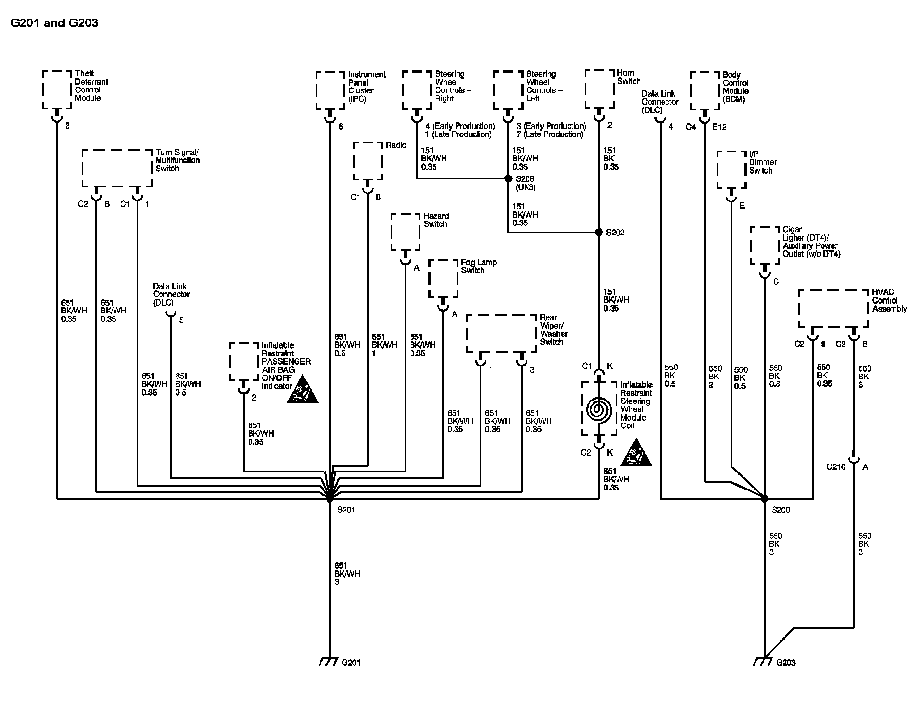The locations for the Connectors, Grounds, Splices, and Grommets shown within these diagrams can be found via their numbers at Vehicle Locations.