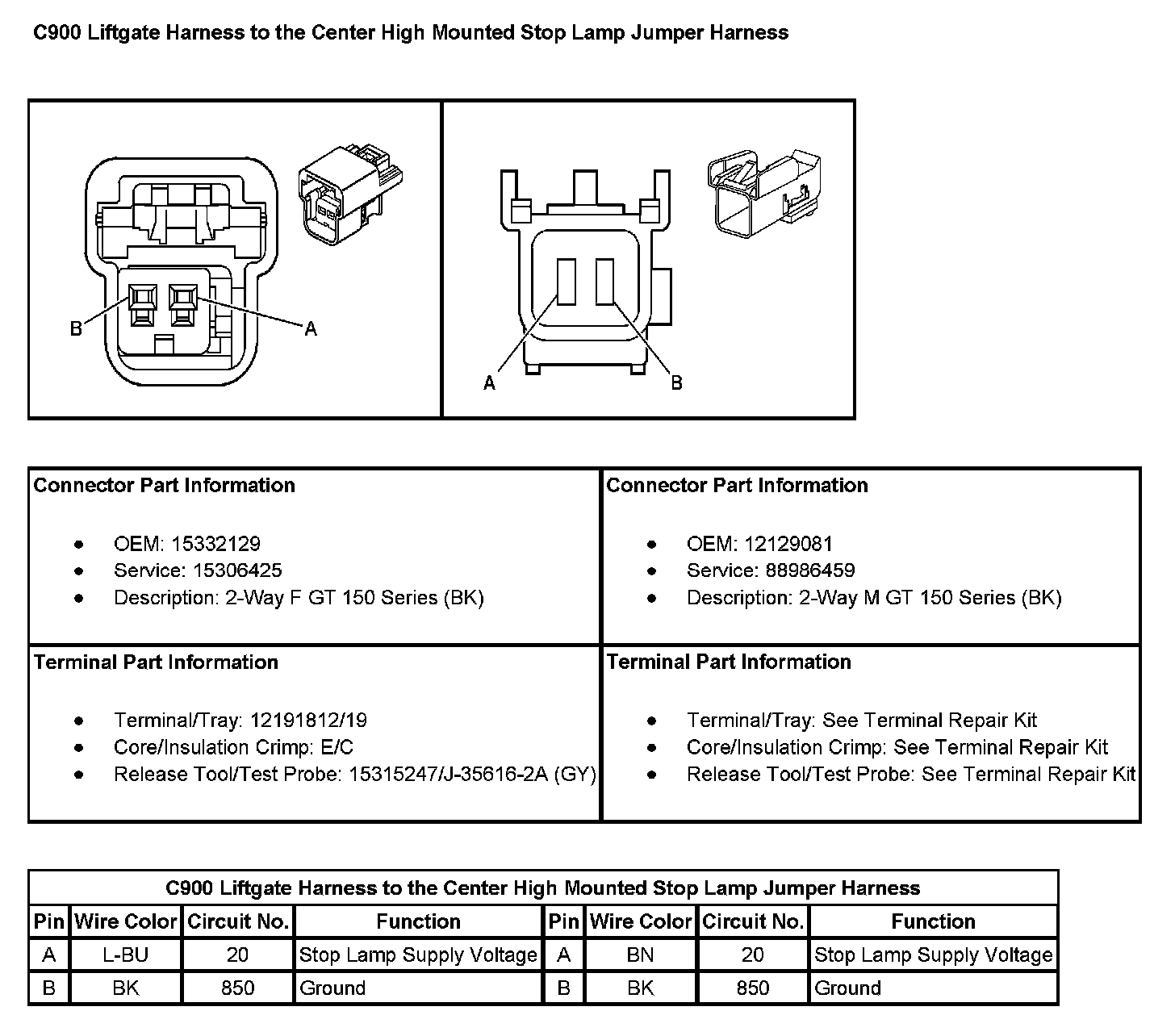 C900 Liftgate Harness To The Center High Mounted Stop Lamp Jumper Harness: