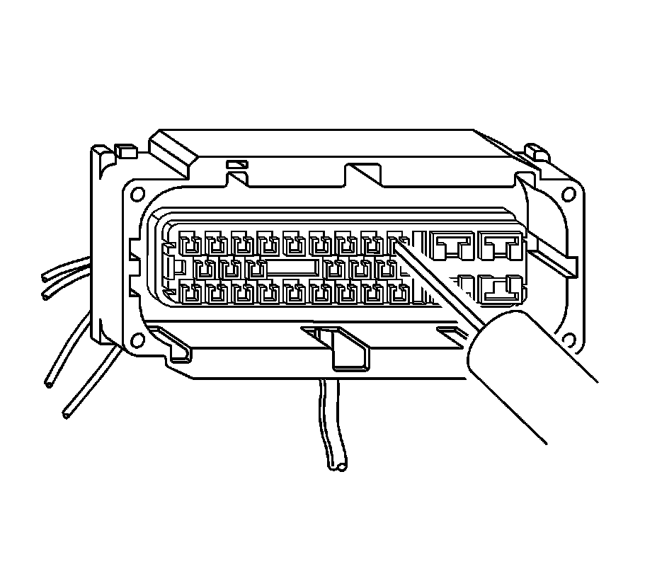 8. Insert the J-38125-553 (15315247) tool into the entry canal and pry up on the terminal retainer. The terminal retainer is a small plastic piece on the top of the terminal. The terminal retainer must be held up while the terminal is pulled out of the connector.