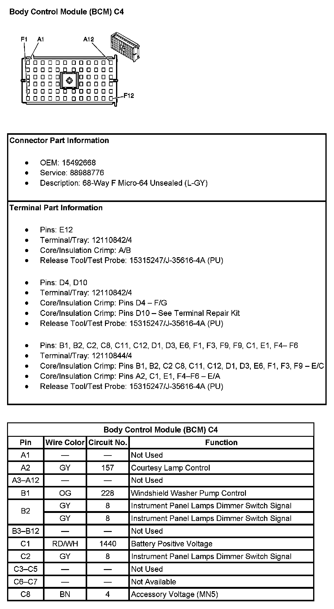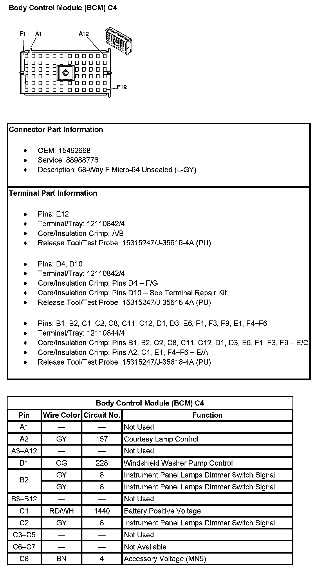 Body Control Module (BCM) C4 (Pin A1 To C8):